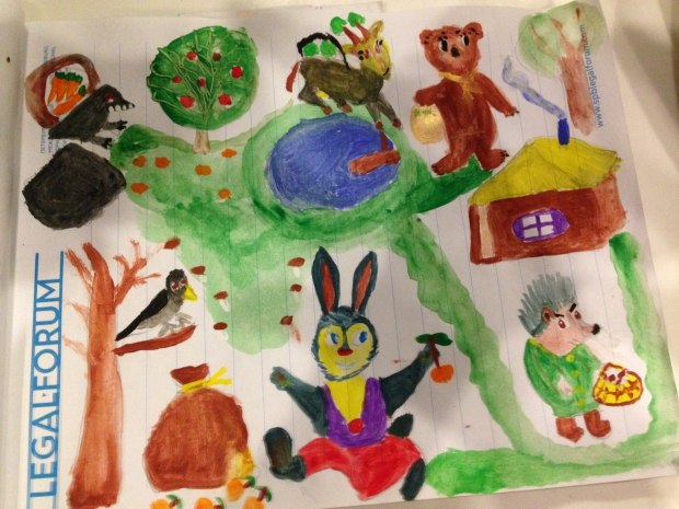 Там заяц яблок нес мешок,