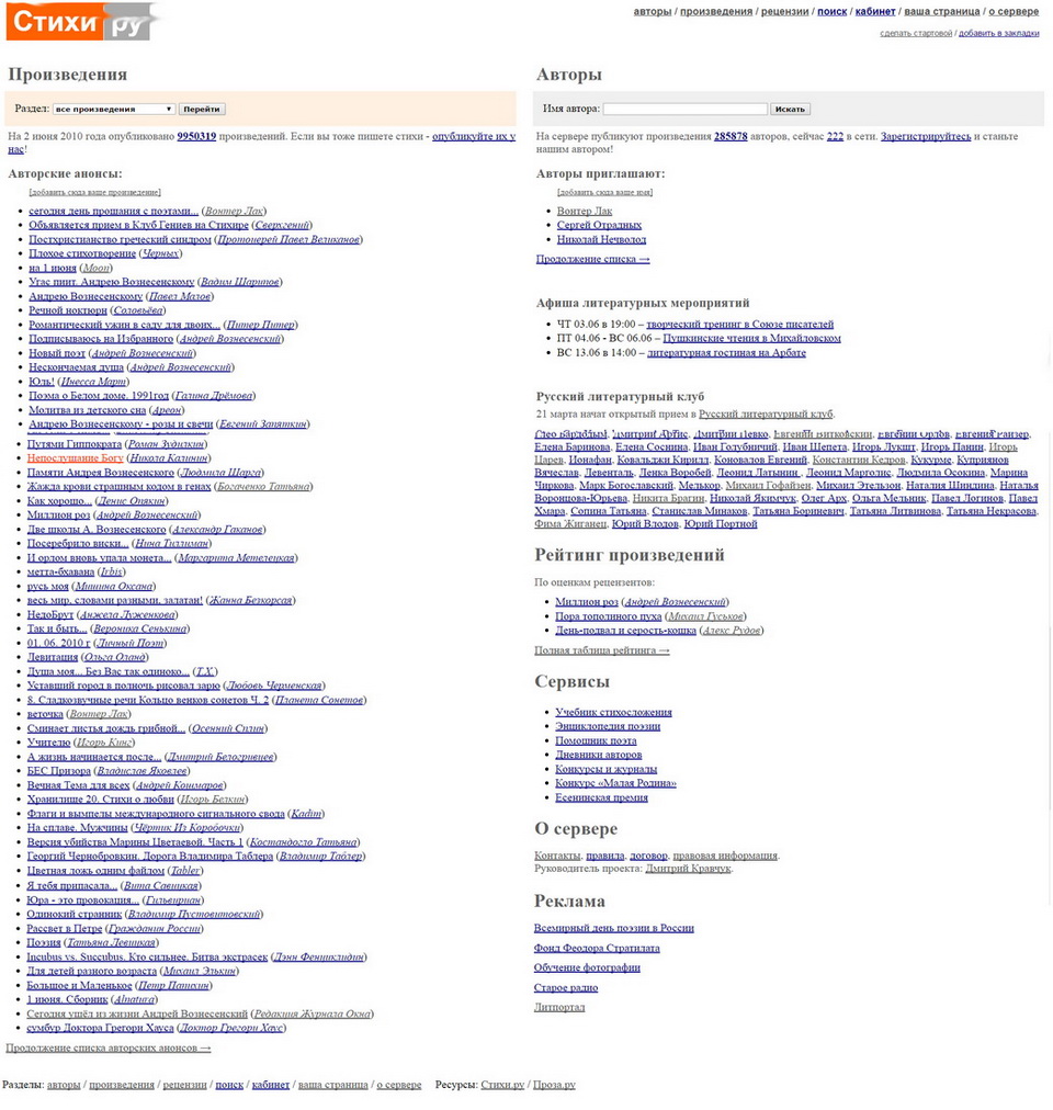 Сравните вид Главной страницы Стихи.ру с тем видом, который она имеет сейчас.