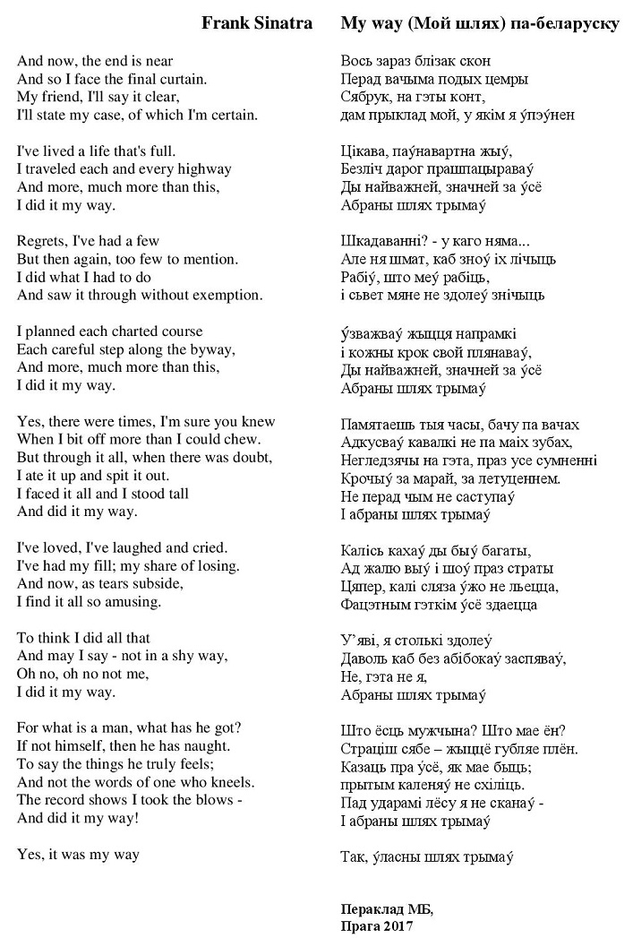 Frank Sinatra, My way Мой шлях па-беларуску