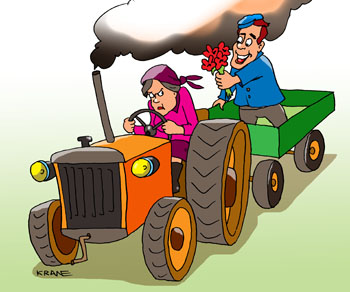 Села в трактор "Беларусь".