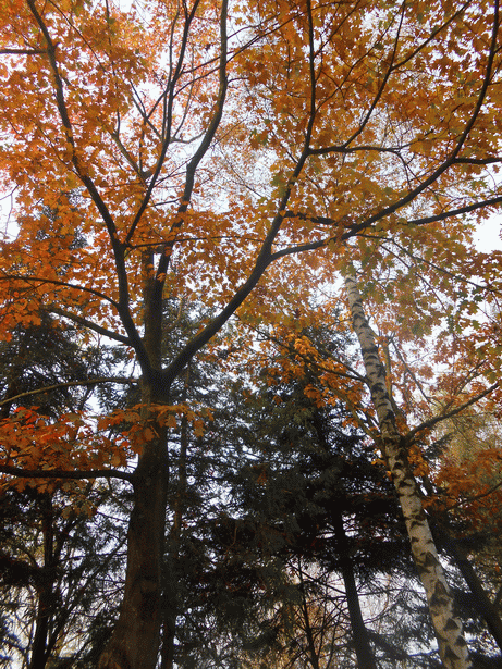 среди темнеющих стволов,