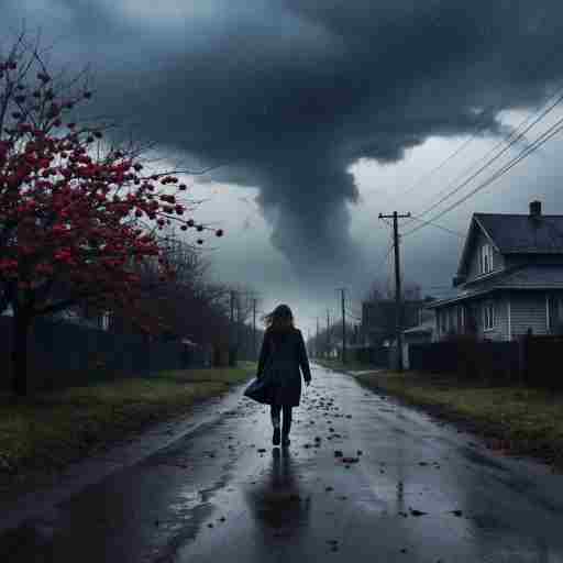 Рыдало небо, меркли звёзды, склонялись древа от ветров, и смерч швырял рябиновые гроздья по закоулкам сереньких дворов. Твой плащ косым дождём пропитан, метался ветер в складках рукава, в асфальте каждый след твой был засчитан, ты потеряла на себя права бежать, прижав ладонью ветер, в летящих дождевых лучах такую смерч тебя заметил, притих, уснул в твоих очах.