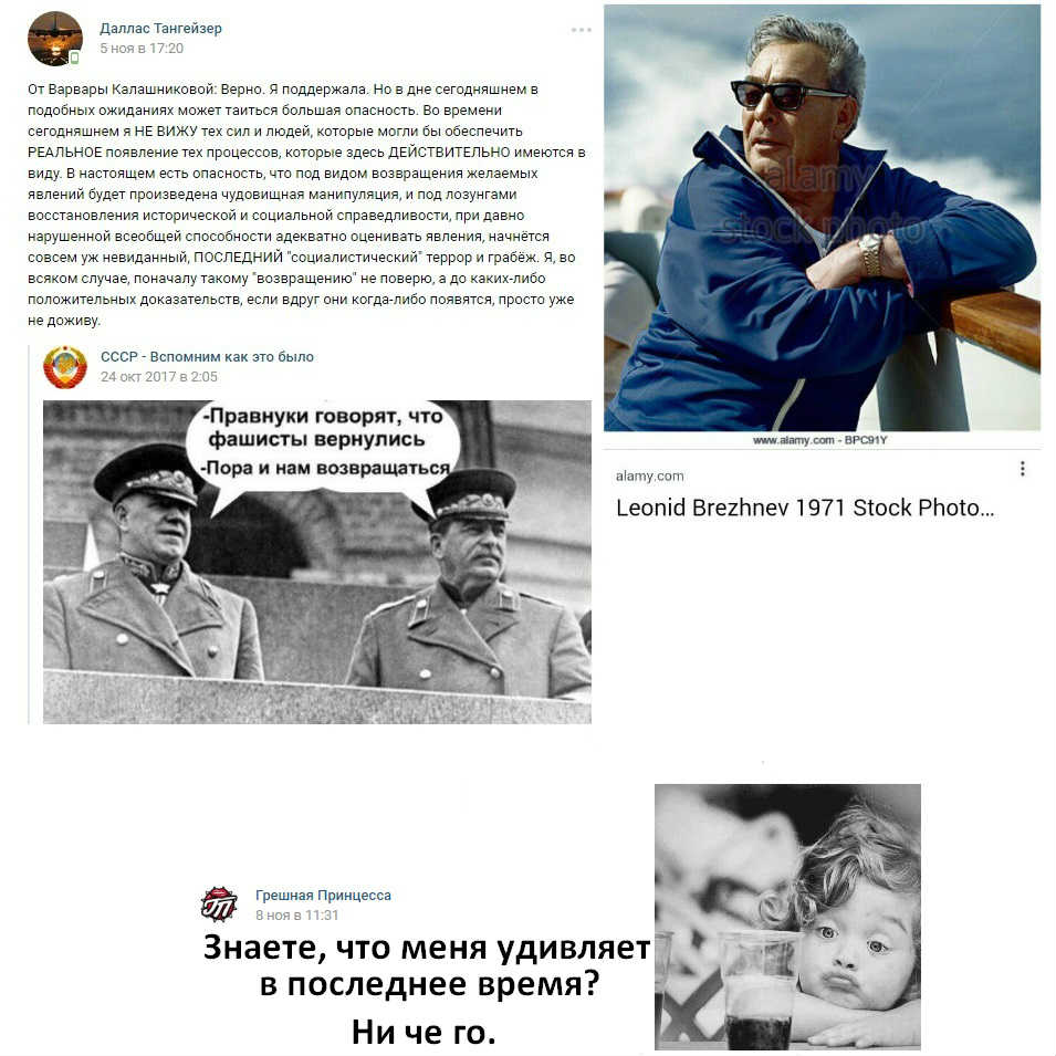 /14:51/ Далее— ВКонтакте у меня было много постов, посвящённых СССР (видимо, к столетию революции — 7 ноября). Я их почти не комментировала, — просто брала к себе и наслаждалась. Пример комментария: «Эх, блин, не для кого больше. Семь миллиардов девайсов "создадут" что-то совсем другое...»