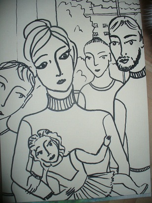 Маму за столом,