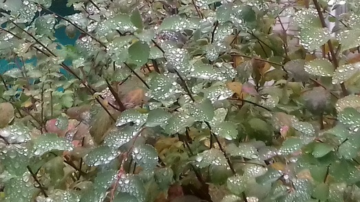 Как бриллианты, капли на листве.