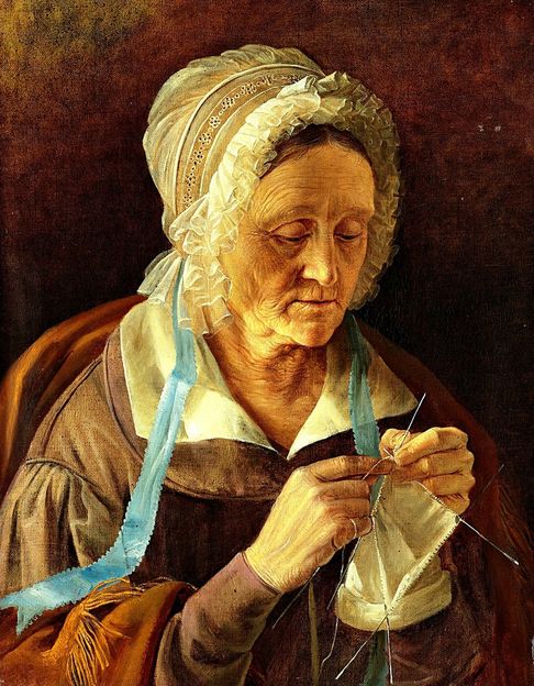 Живописное полотно Ивана Хруцкого «Старуха, вяжущая чулок» (год 1838)