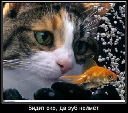 На рыбок смотрит кот, пусть в мыслях всё же,