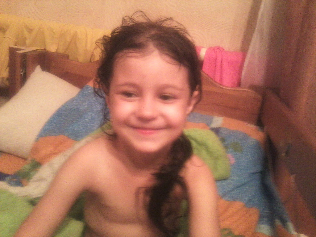 Глажу дочери мягкие пряди.