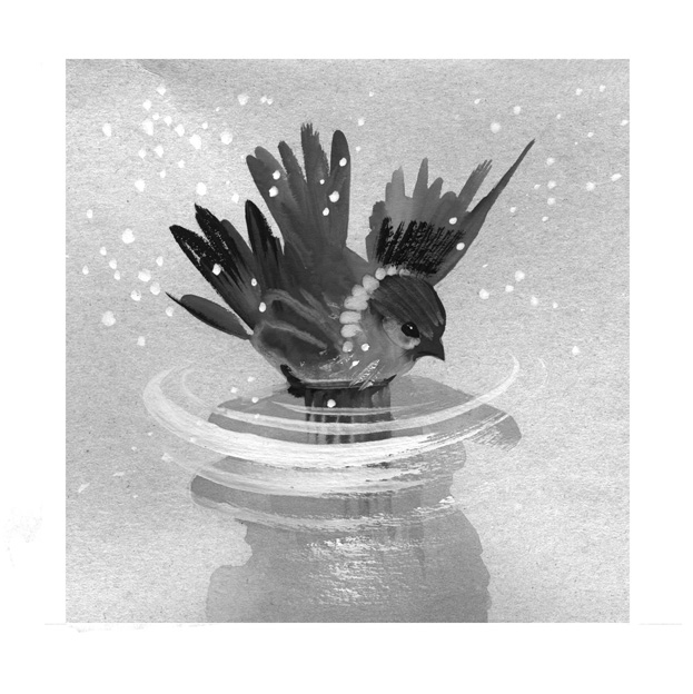В студёной луже воробей