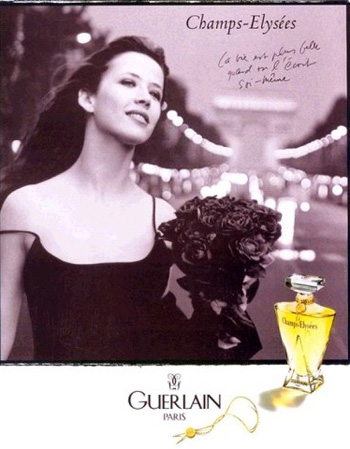 *Софи Марсо - французская киноактриса, кинорежиссёр и певица, была лицом аромата Champs Elysees от Guerlain, хотя в жизни ее любимые духи Shalimar и Mitsouko этой же марки.