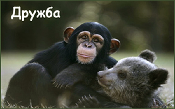 На фото из Интернета: медвежонок и обезьяна бонобо.