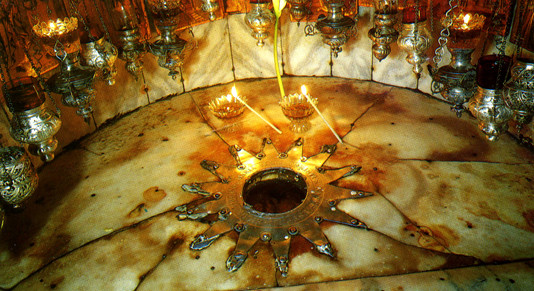 К полудню шестого дня, вдали, у самой линии горизонта показалось человеческое жильё. И тут Звезда впервые за всё время путешествия круто повернула в сторону, сменив южное направление на восточное. Сама же она стала необыкновенно яркая и крупная. Отчётливо можно было разглядеть четырнадцать серебристых лучей, исходящих от неё. Ослик, не ожидая моей команды, повернул налево и, ускорив шаг, прямиком направился к горе, у подножия которой виднелось небольшое, наполовину заваленное камнями углубление. Я достал из походной сумки бинокль и всмотрелся в тёмный проём горы. Мне показалось, что из глубины пещеры струится едва заметный голубоватый свет. А над самым входом кто-то из латинян нацарапал прямо по камню текст: «Hic de virgine Maria Iesus Christus Natus est*».