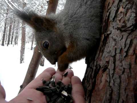 Лишь у кормушки беличьи следы.