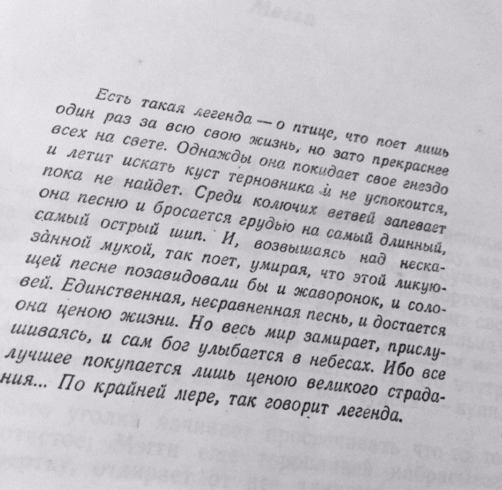 Помнишь рассказ о птице, той, которая острый находит шип