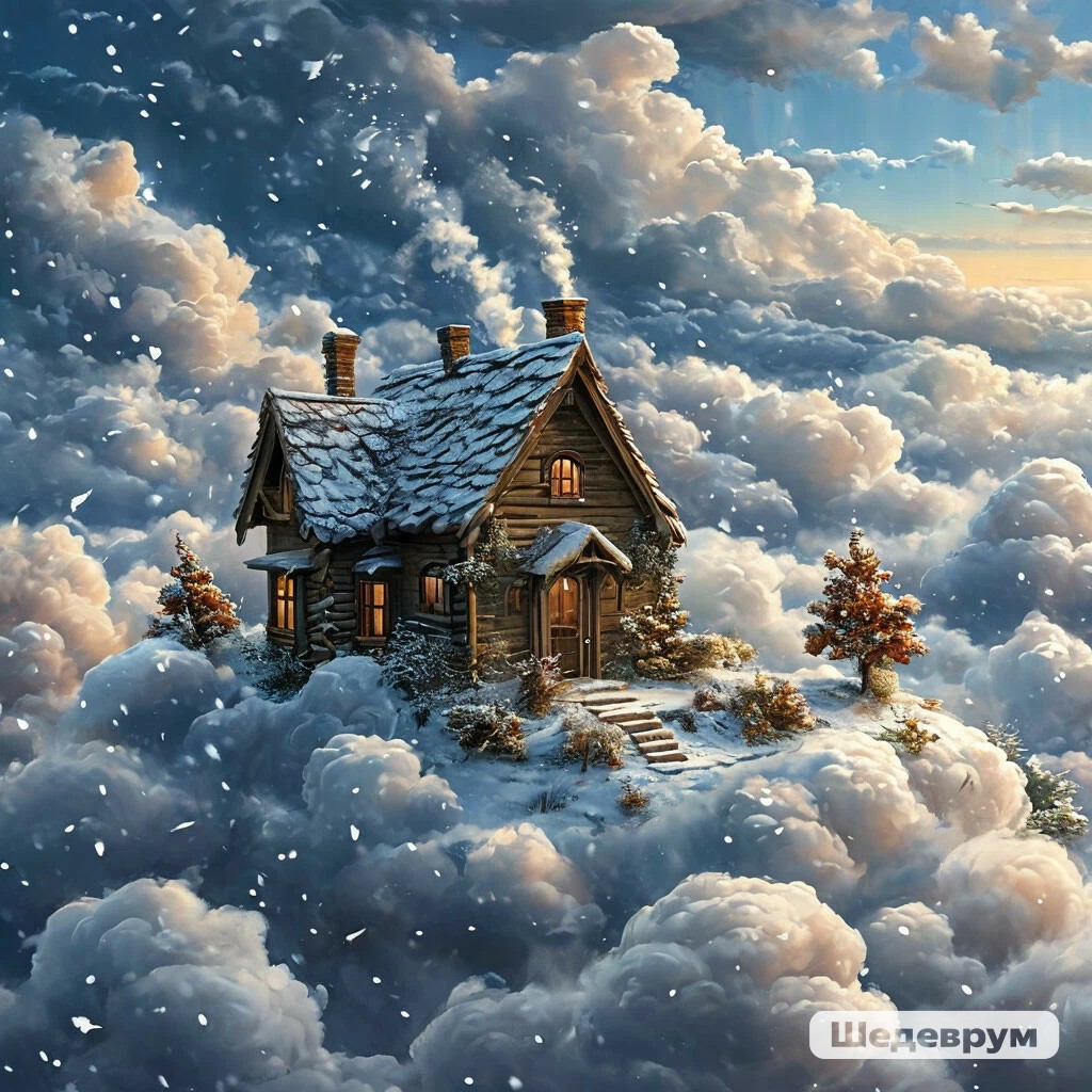 Взбивает перину в маленьком домике,