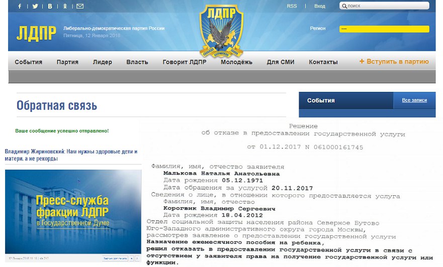 Письмо Жириновскому В. В. 12 января 2018г