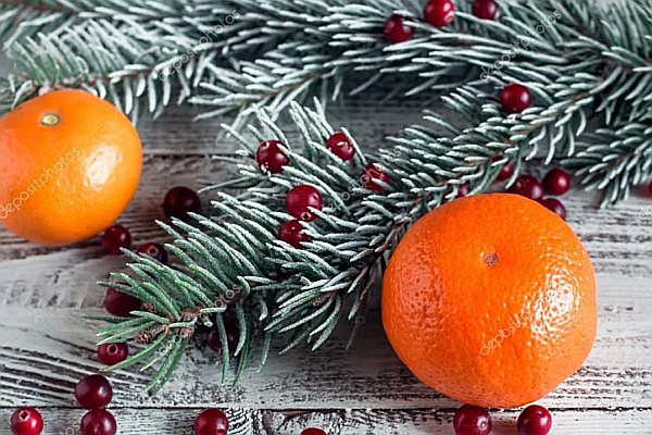 На рождественской ёлке остался один мандарин,