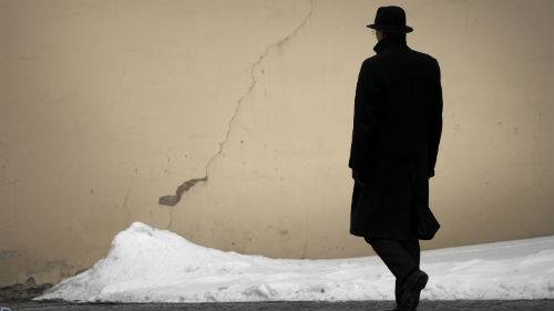 Сбивая тростью, иней сникших веток.