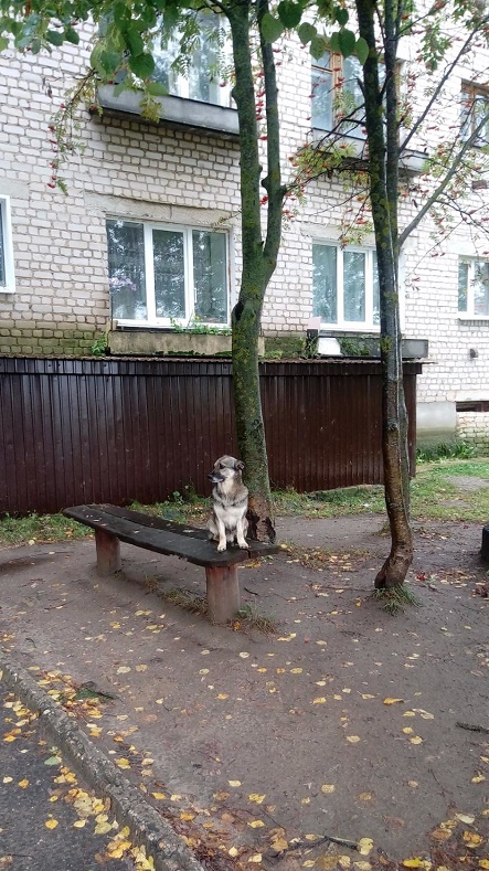 Уселся песик на скамейку,