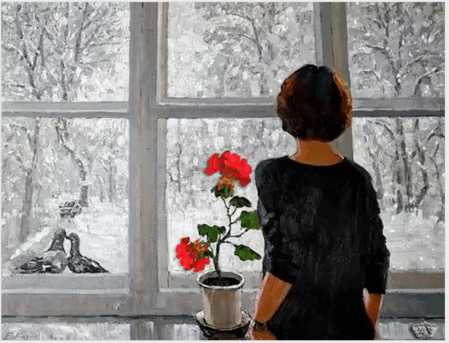 на оконном замёрзшем стекле -