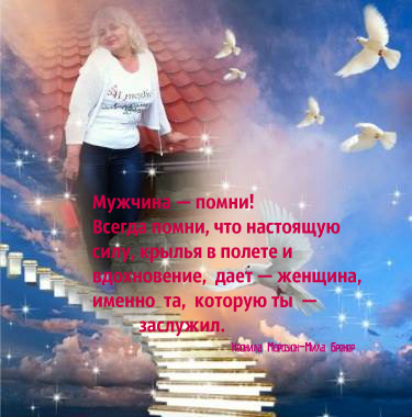 Мужчина — помни! Всегда помни, что настоящую силу, крылья в полете и вдохновение,  дает — женщина, и именно  та, которую ты  — заслужил.