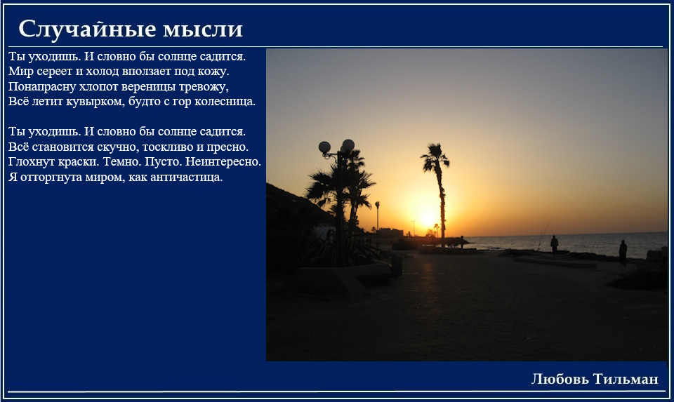 Ты уходишь. И словно бы солнце садится.