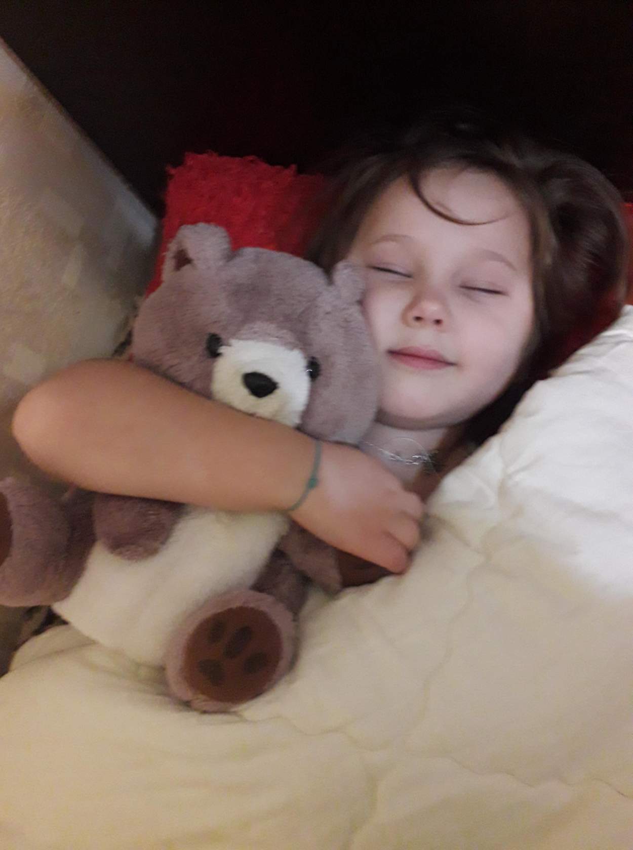 Маленькие рученьки обнимают мишку...