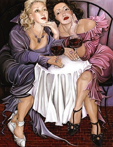 Пара потасканных внешне подруг, –