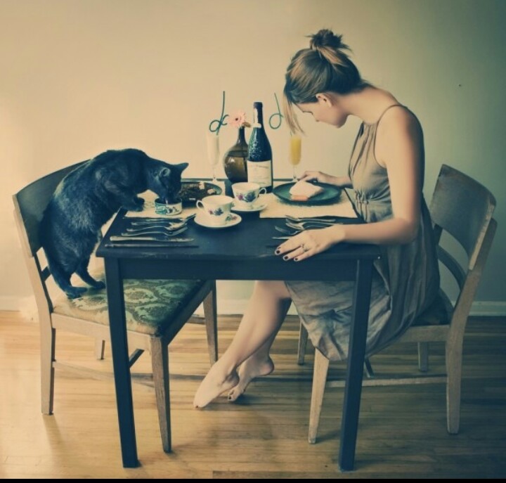 И вот, мы за столом вдвоём сидим.