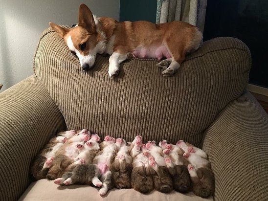 Мама спит и спят щенятки,