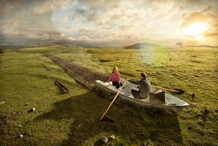 Взрезая лодки дном поверхность, будто плугом…