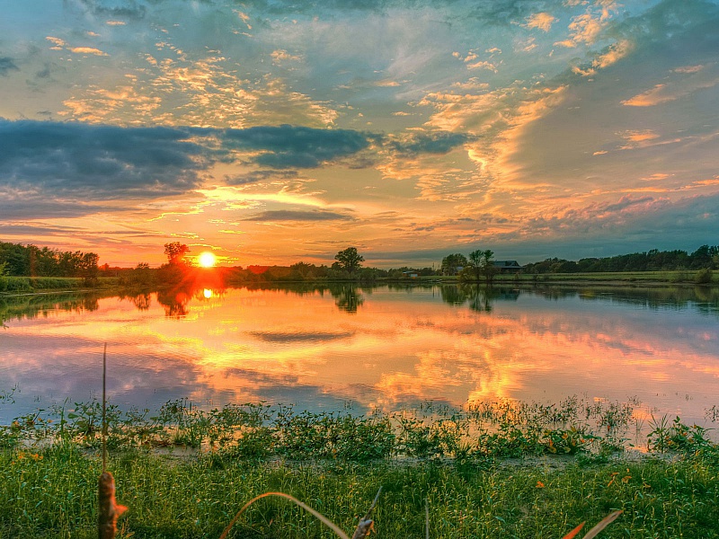 Закатное солнце блестит,
