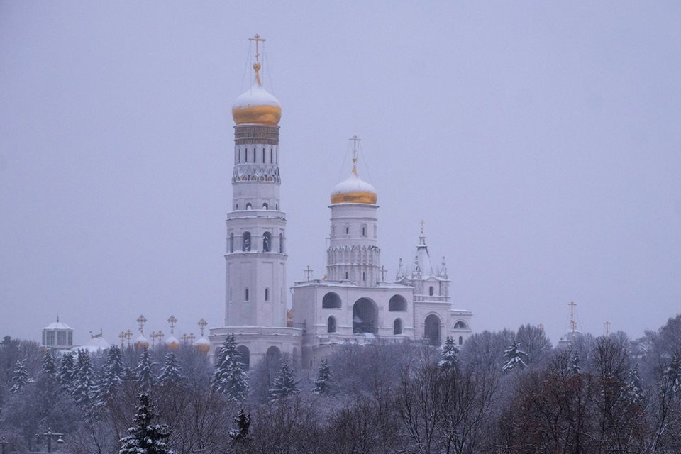 В домах высотных, куполах.