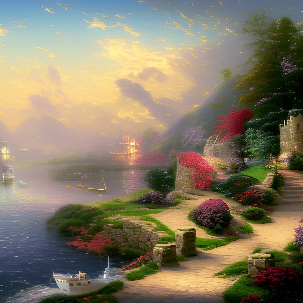 Плывут корабли по быстрой реке.
