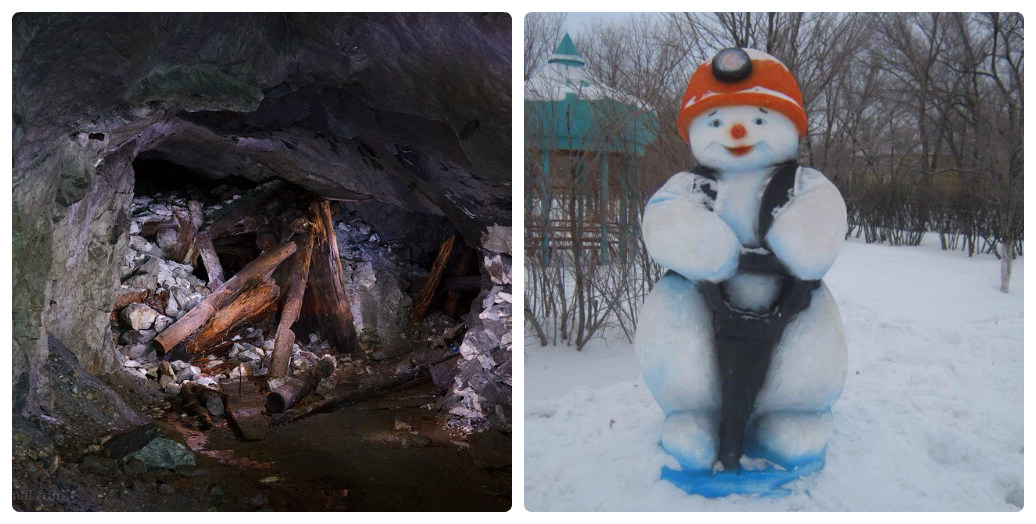 В шахтёрской каске Снеговик…