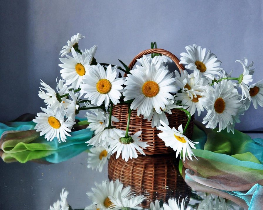 А на столе букет ромашек,