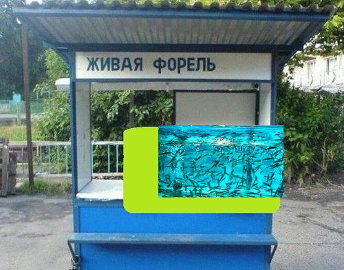 (за заплаткой закрыт аквариум с рыбками для пилинга.