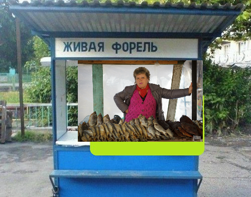 Вдруг, надпись на ларьке "Форель живая".