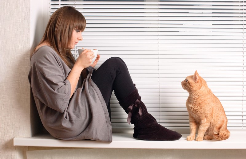 Кофе, подоконник, кошка,