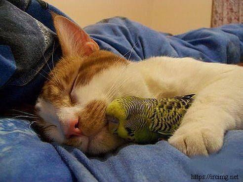 Спит уютно птичка в кошке,