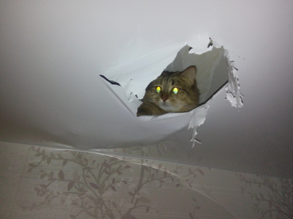 Потолок, ремонт и кот