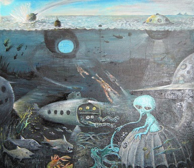 *-смотри рисунок (картина «Первый контакт» - своя, холст, масло)
