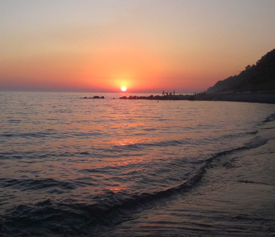 В море солнце уходило нежно, не спеша.