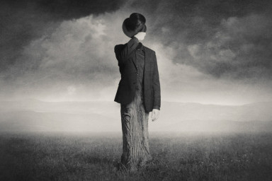 Оплывает тряпьём человек.