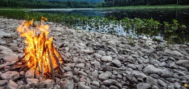Огонь дрожит в костре, как заяц,