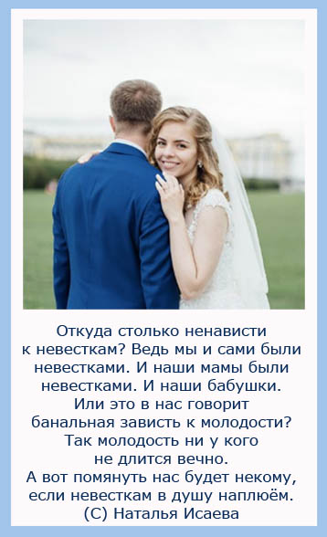 если невесткам в душу наплюём.