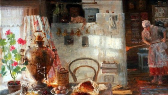 печку в доме топила,
