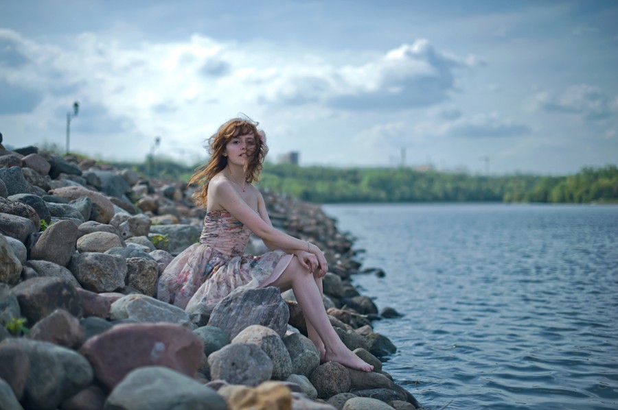 Усевшись на камни средь волн,