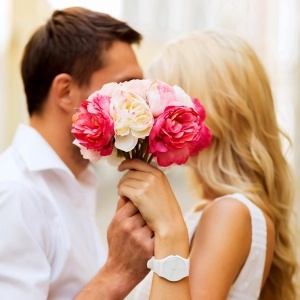 Парня увидев с букетом в руках,