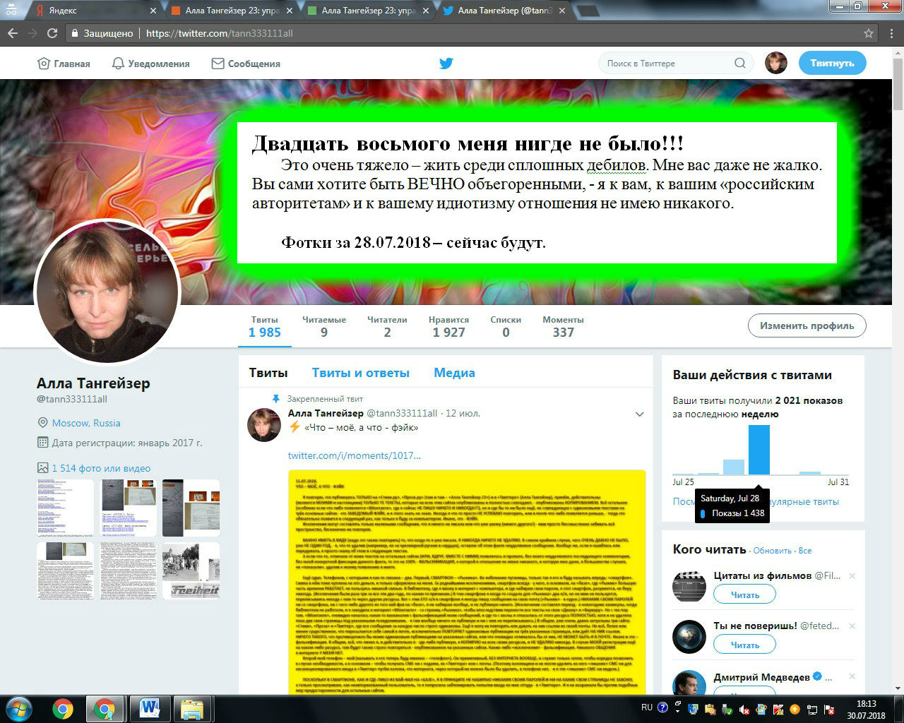 30. 07. 2018. - Твиттер